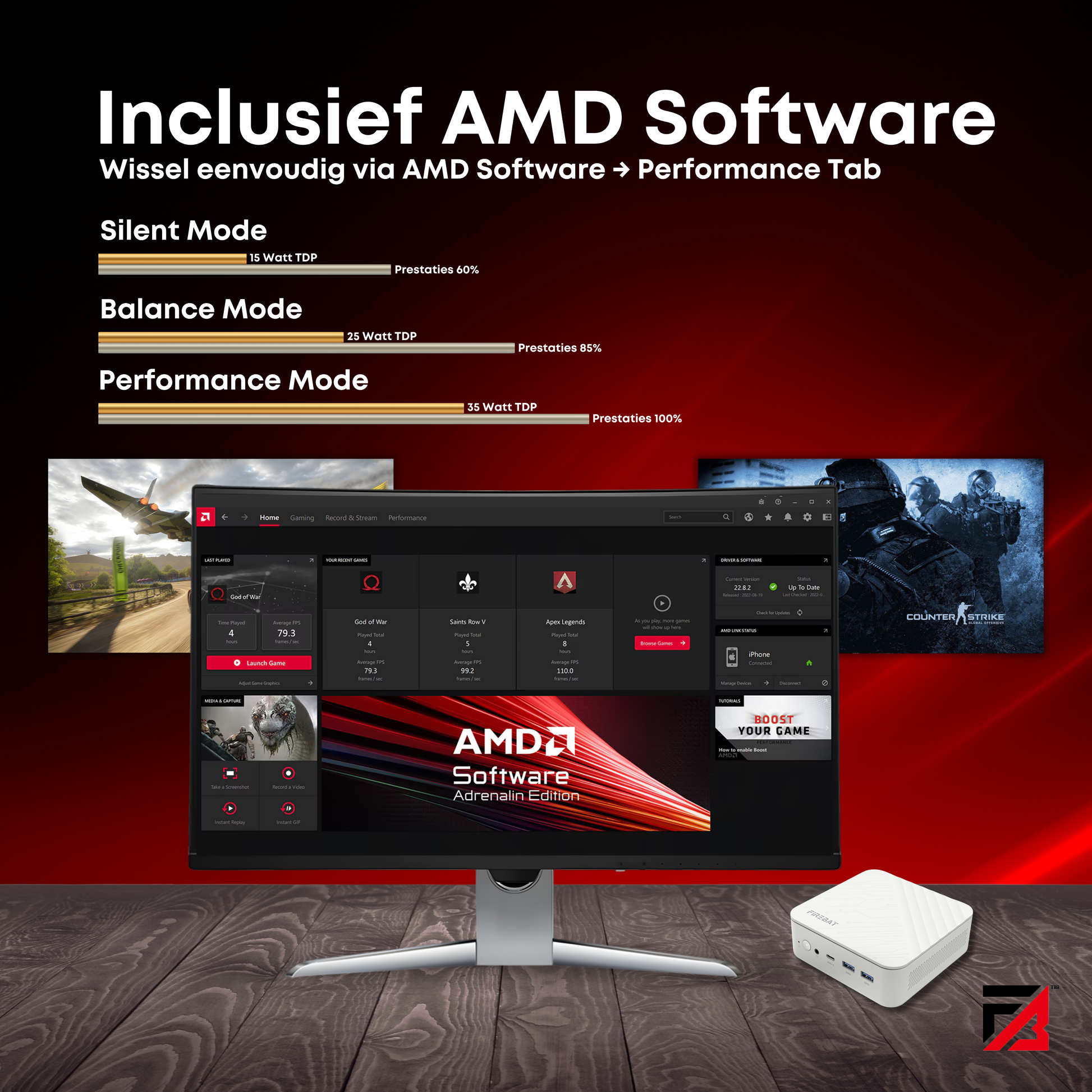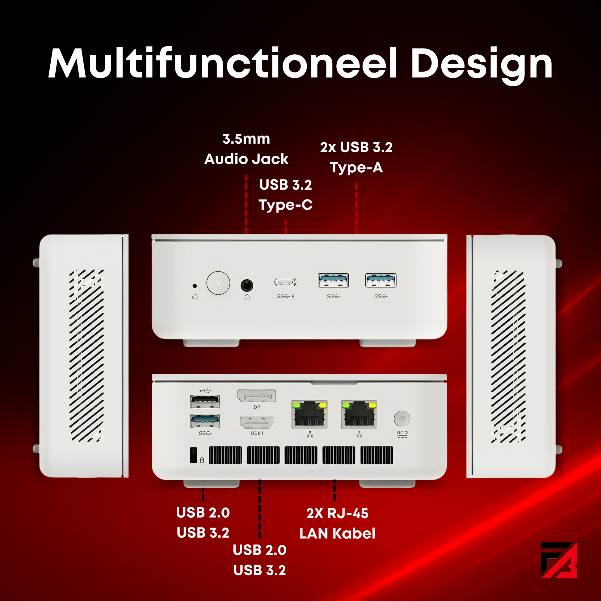 Compacte mini PC met 16 GB DDR4 RAM en 512 GB SSD-opslag